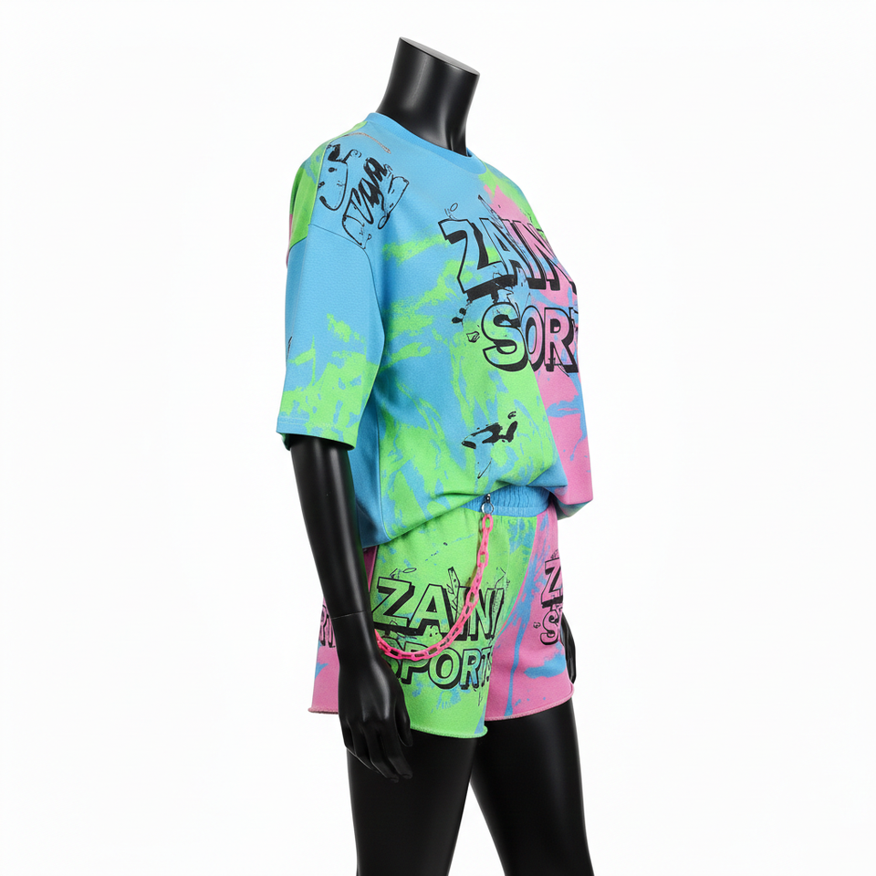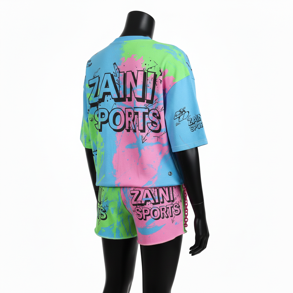 ชุดเสื้อยืดและกางเกงขาสั้นผู้หญิง ผ้าคอตตอนเจอร์ซีย์พรีเมียม 180 GSM ชุดสีตัดต่อ พิมพ์ลายโลโก้ตามสั่ง ชุดสำหรับผู้หญิง