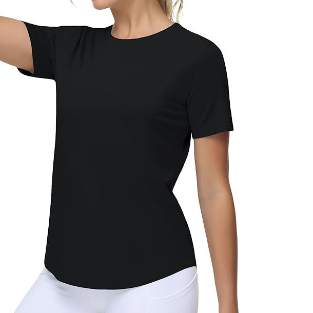 เสื้อยืดผู้หญิง เนื้อผ้าแอรี่ ระบายอากาศดี ลายเรียบเนียน กระชับรูปร่าง น้ำหนักเบา สวมใส่สบาย เคลื่อนไหวได้อย่างอิสระ เหมาะสำหรับใส่ในชีวิตประจำวัน