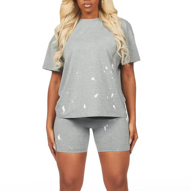 ชุดเสื้อยืดและกางเกงขาสั้นผู้หญิง ชุดลำลองเนื้อผ้านุ่ม ใส่สบาย เหมาะสำหรับใส่ที่บ้านหรือเดินเล่น ชุดสองชิ้น เสื้อยืดและกางเกงขาสั้น ชุดลำลองฤดูร้อน ชุดเข้าชุด