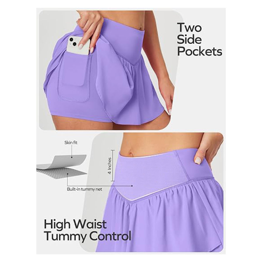 กระโปรงใส่เล่นเทนนิสของผู้หญิงกระโปรงโพลีเอสเตอร์ผ้าสแปนเด็กซ์ระบายอากาศได้ดี