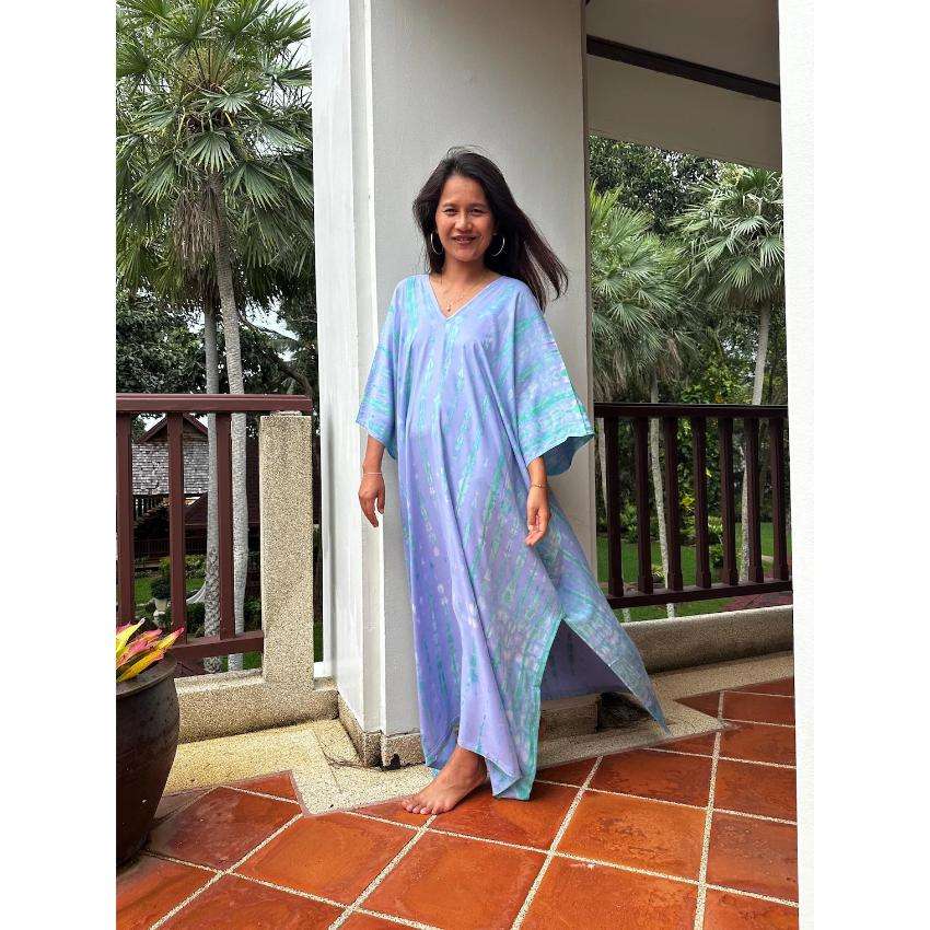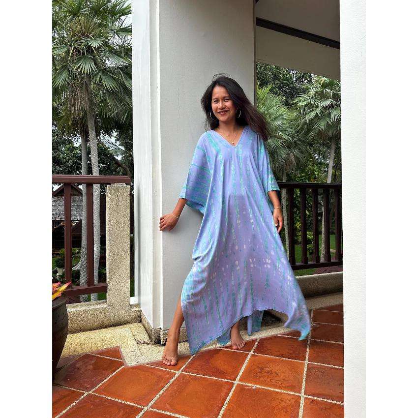 ชุดเดรสคาฟทันผ้ามัดย้อมแบบซักได้ เป็นมิตรกับสิ่งแวดล้อม ทรงหลวม เอวธรรมชาติ เหมาะสำหรับฤดูร้อน ชายหาด วันหยุดพักผ่อน