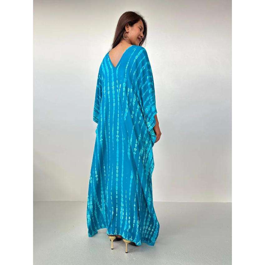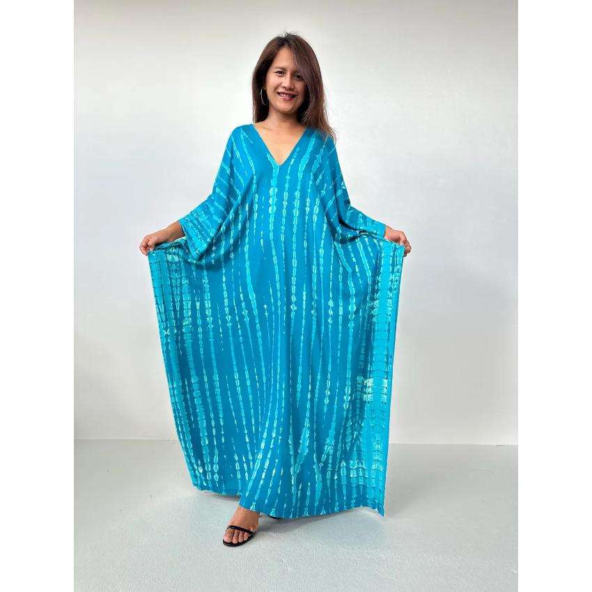 ชุดเดรสยาวแบบคาฟตันลายมัดย้อมสำหรับผู้หญิง | ชุดรีสอร์ททรงหลวมขนาดใหญ่ เอวธรรมชาติ ซักได้ | ชุดเดรสชายหาดและชุดลำลองย้อมสีด้วยมือ