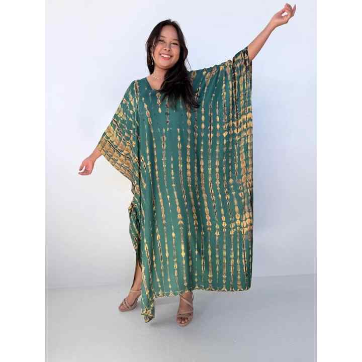 Women Tie Dye Kaftan Maxi Dress Oversized Loose Fit Natural Washable Resort Wear Hand Dyed Beach Lounge