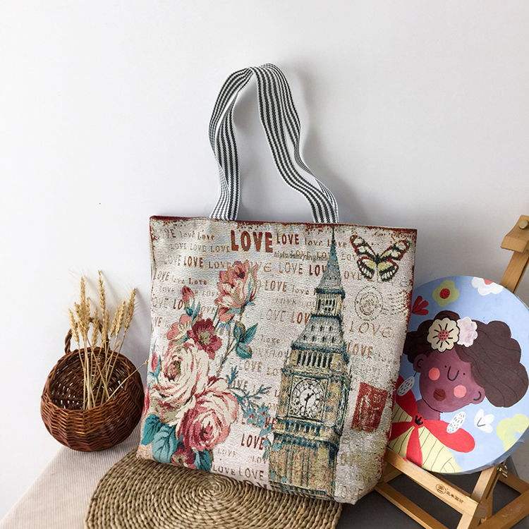 กระเป๋าช็อปปิ้งผู้หญิงลายดอกไม้