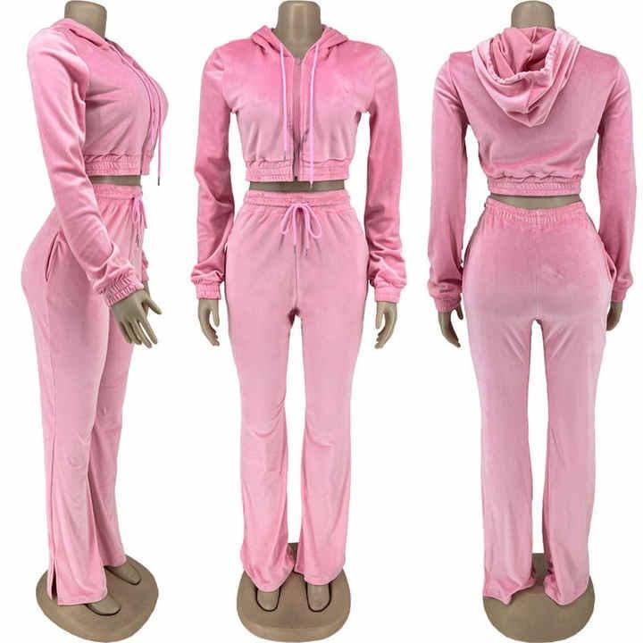 ชุดวอร์มผู้หญิง สกรีนโลโก้ได้ คุณภาพสูง ชุดสองชิ้น กางเกงขายาว เสื้อฮู้ดซิปผ้าฝ้ายฟลีซ และกางเกงวอร์มขายาว ชุดออกกำลังกายผู้หญิง