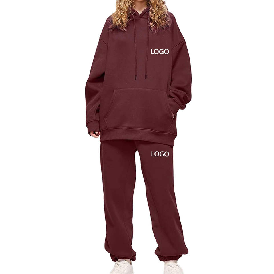 ชุดวอร์มผ้าฝ้ายหนา2ชิ้นสำหรับผู้หญิงชุดวอร์มผ้าคอตตอนแบบสวมหัวทรงโอเวอร์ไซส์
