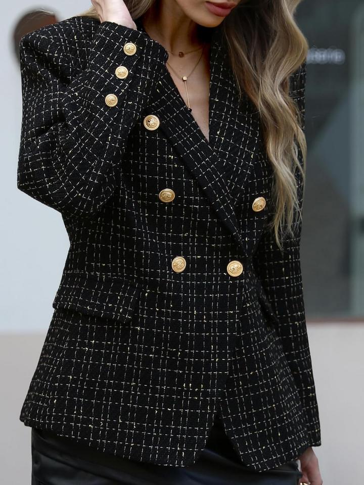 เสื้อเบลเซอร์ผ้าทวีตสำหรับธุรกิจเสื้อแจ็กเก็ตกระดุมคู่แบบลำลองชุดทำงานแบบเปิดด้านหน้า