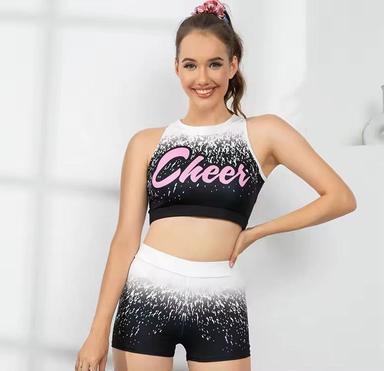 ชุดเชียร์ลีดเดอร์หญิงแบบสองชิ้น เสื้อแขนยาว กระโปรงจีบ ชุดเต้นคุณภาพสูง
