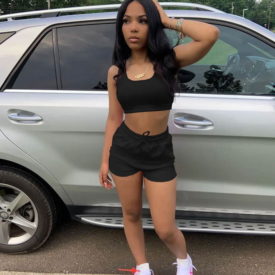 ชุดออกกำลังกายขาสั้นสองชิ้นสำหรับผู้หญิงชุดวอร์มเสื้อเชิ้ตกางเกงขาสั้นชุดวิ่งชุดออกกำลังกาย