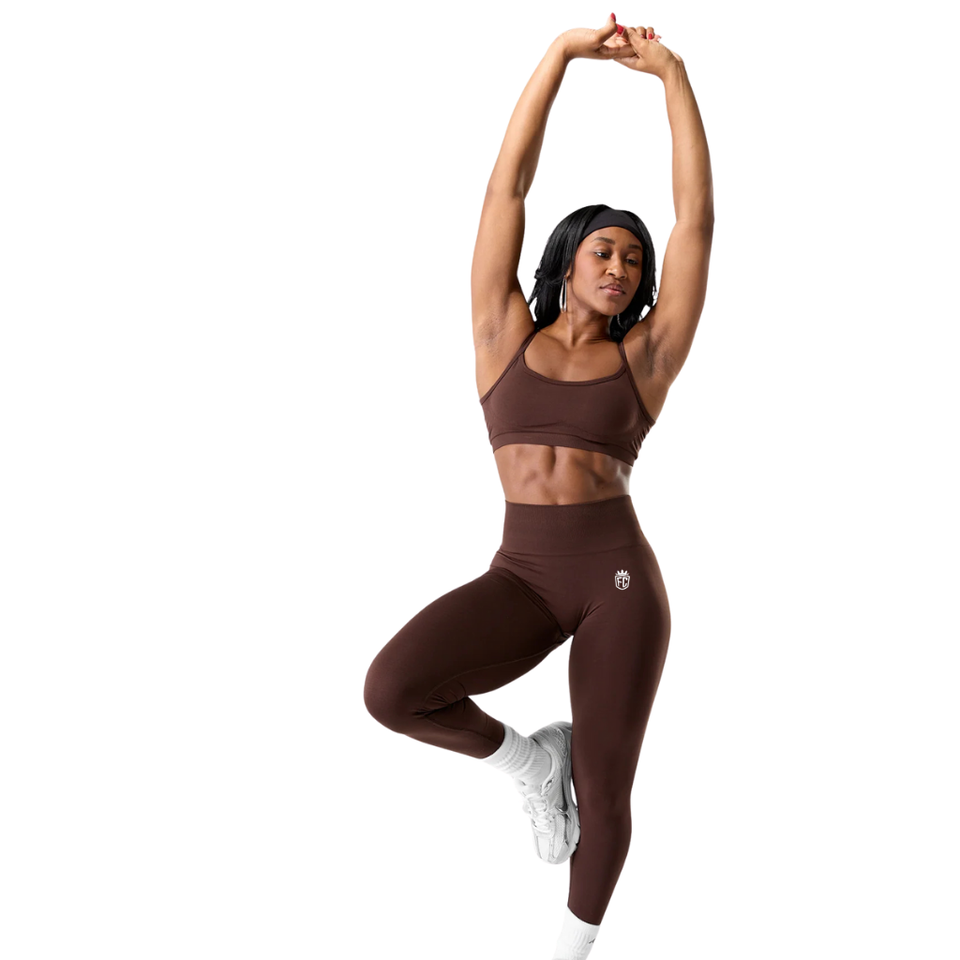 กางเกงเลกกิ้งเอวสูงพิเศษไร้ตะเข็บสำหรับผู้หญิง สีเอสเพรสโซ ยืดหยุ่นสูง เหมาะสำหรับโยคะ ออกกำลังกาย ฟิตเนส กระชับหน้าท้อง ชุดออกกำลังกายแบบโปรฟิต