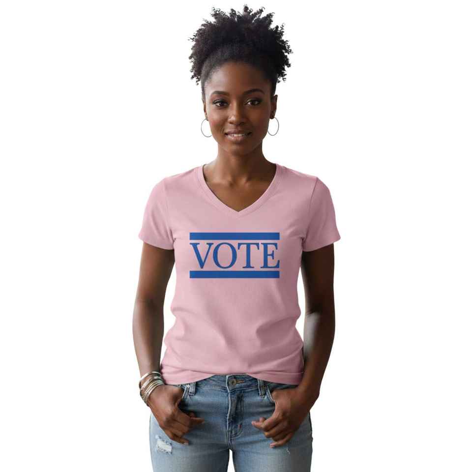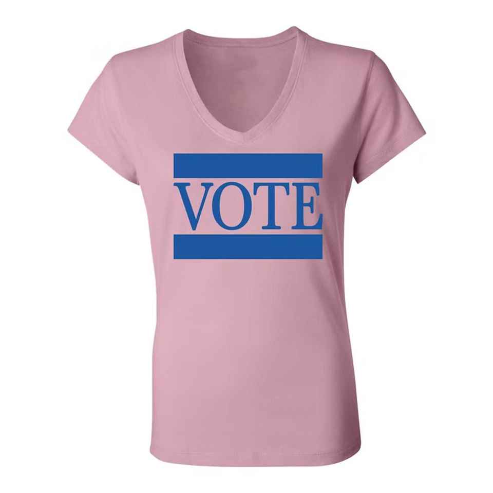 เสื้อยืดคอกลมพิมพ์ลาย VOTE สีชมพูและสีน้ำเงิน สำหรับผู้หญิง เสื้อยืดลำลองพิมพ์ลายตามสั่ง ผ้าคอตตอนผสม