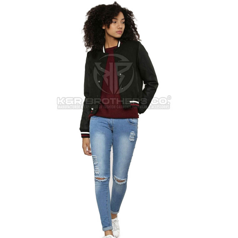 Product name:Women Leather Sleeves Varsity Jacket