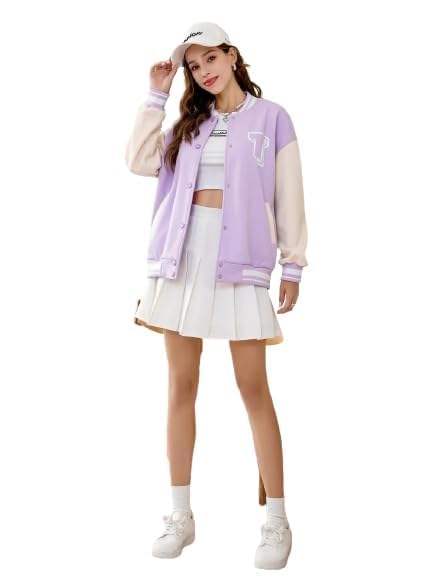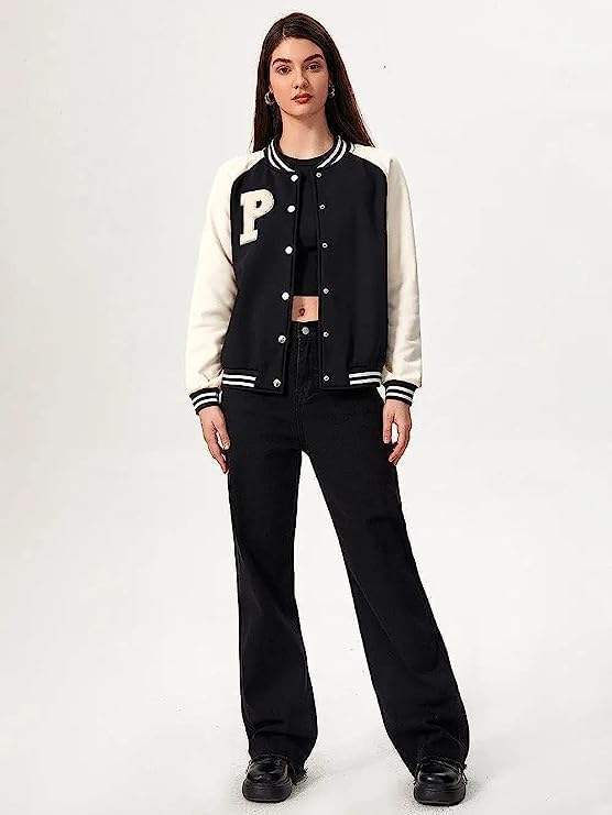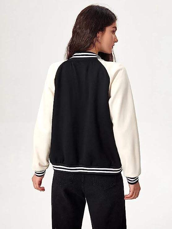 แจ็คเก็ตวาร์ซิตี้ผู้หญิง แขนหนัง คอลเลคชั่นฤดูหนาว สตรีทแวร์ แจ็คเก็ตวาร์ซิตี้พรีเมียมสำหรับสุภาพสตรี