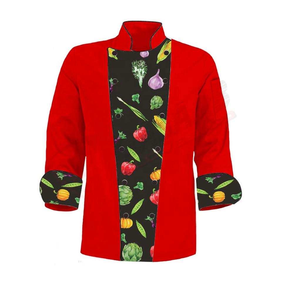 ชุดยูนิฟอร์มเชฟสำหรับผู้หญิง,เสื้อโค้ททำอาหารพิมพ์ลายผัก