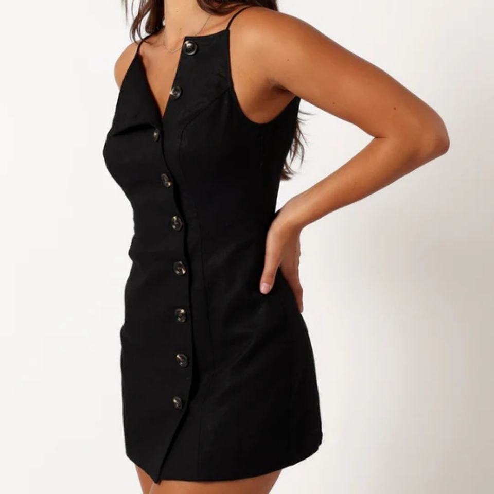 เดรสผ้าลินินสไตล์วินเทจลำลองสำหรับผู้หญิง ชุดมินิเดรสสีพื้นสำหรับงานแต่งงาน