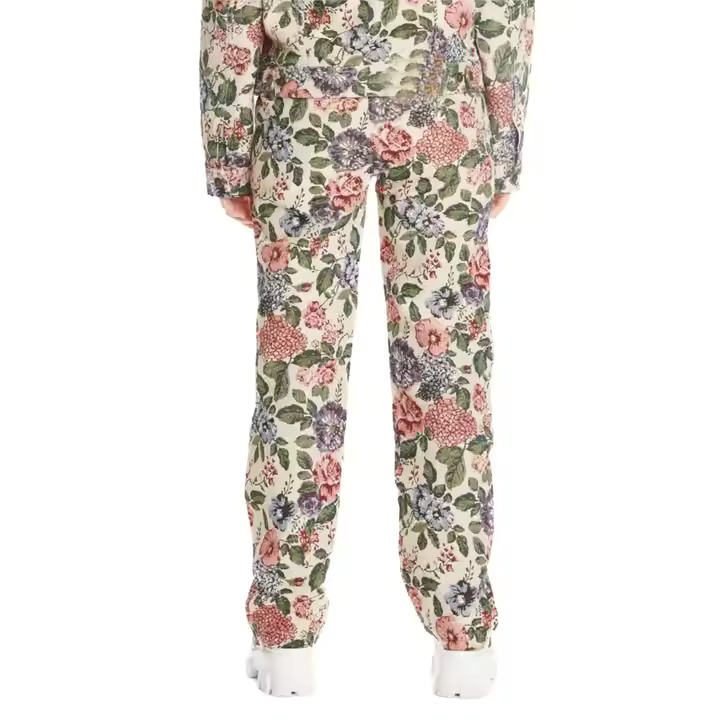 กางเกงผู้หญิงพิมพ์ลายดอกไม้แนววินเทจ-กางเกงนุ่มและน้ำหนักเบามีลวดลายดอกไม้ย้อนยุคเหมาะสำหรับผู้หญิง