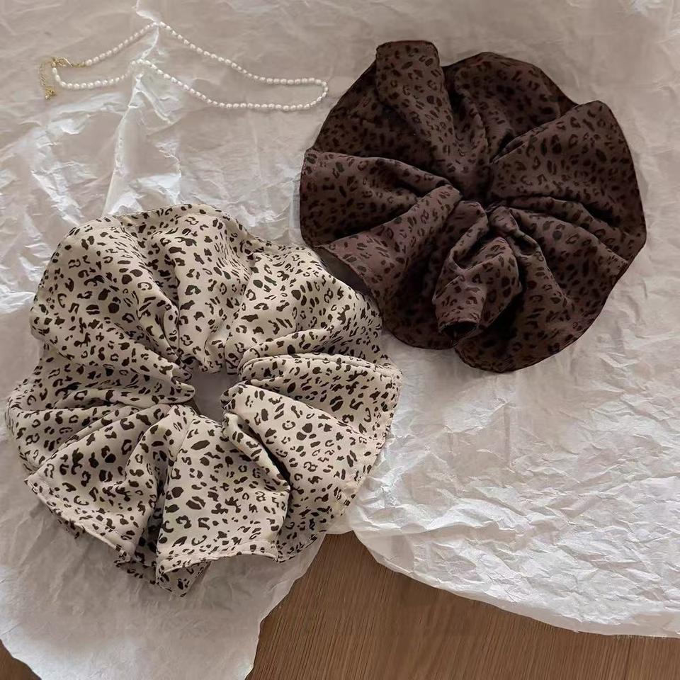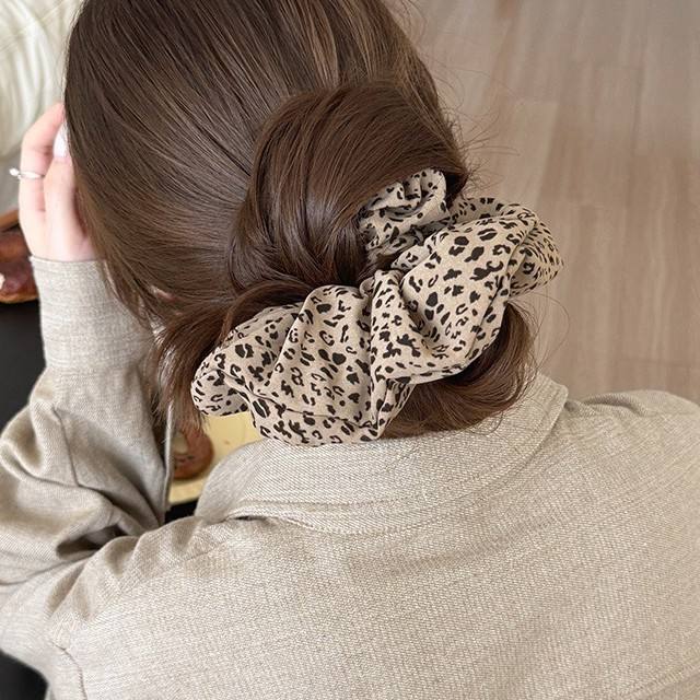 ที่คาดผมผ้าพิมพ์ลายเสือดาวสไตล์วินเทจสำหรับผู้หญิง พร้อมยางรัดผมแบบยืดหยุ่น