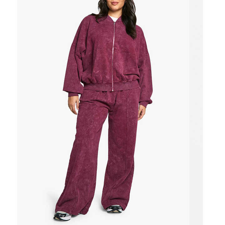 ชุดเซ็ต 2 ชิ้น ผ้าฝ้ายซักแล้ว ทรงหลวม แจ็คเก็ตซิปและกางเกงจ็อกเกอร์ทรงตรง รับทำโลโก้ ขายส่ง OEM สตรีทแวร์ ชุดหนา