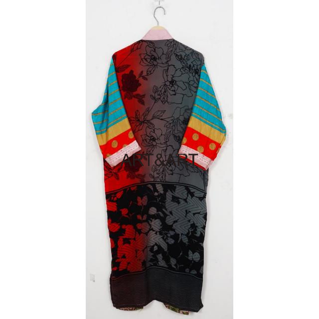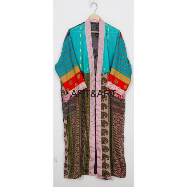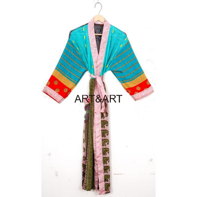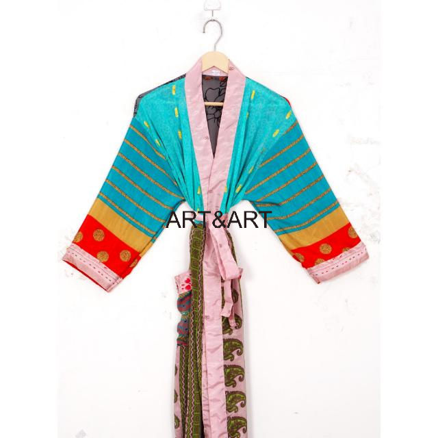 Women Wear Vintage Dressing Gown Beach Party Wear Dress Silk Kimono Japanese Style Silk Patchwork Kimono Indian Silk Sari Kimono