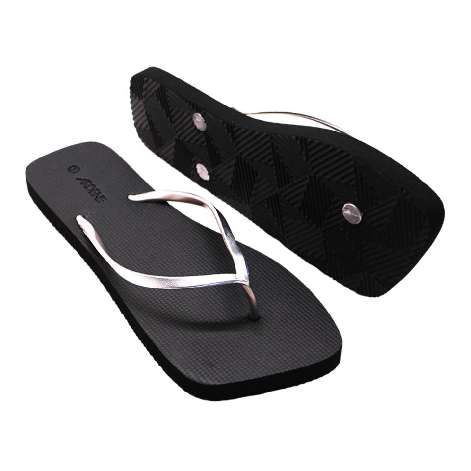 รองเท้าแตะส้นเตารีดผู้หญิง สีดำ สายรัดสีเงินเมทัลลิก รองเท้าลำลองฤดูร้อน รับทำโลโก้จากโรงงาน