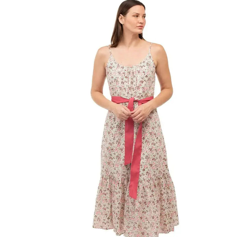เดรสแบบตะวันตกของผู้หญิงชุดเดรสยาวมิดิแขนกุดพิมพ์ลายโบฮีเมียนฤดูร้อน