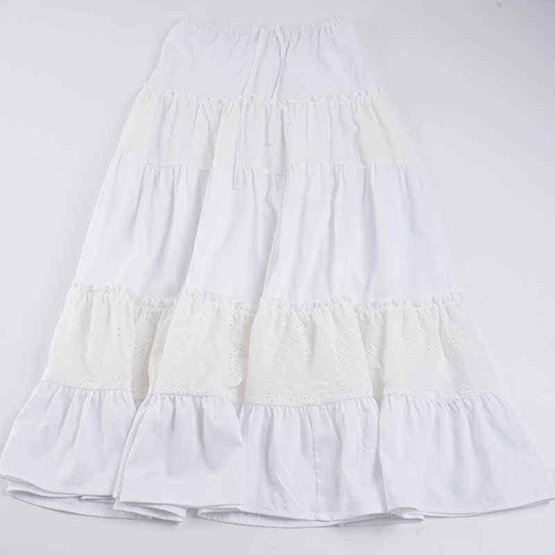 กระโปรงแม็กซี่ทรงเอไลน์สีขาวสไตล์โบฮีเมียนสำหรับผู้หญิง แต่งระบายเป็นชั้นๆ เอวสูง แต่งขอบด้วยลูกไม้ พร้อมเชือกผูกเอว เหมาะสำหรับวันพักผ่อน รุ่นใหม่ล่าสุดปี 2026