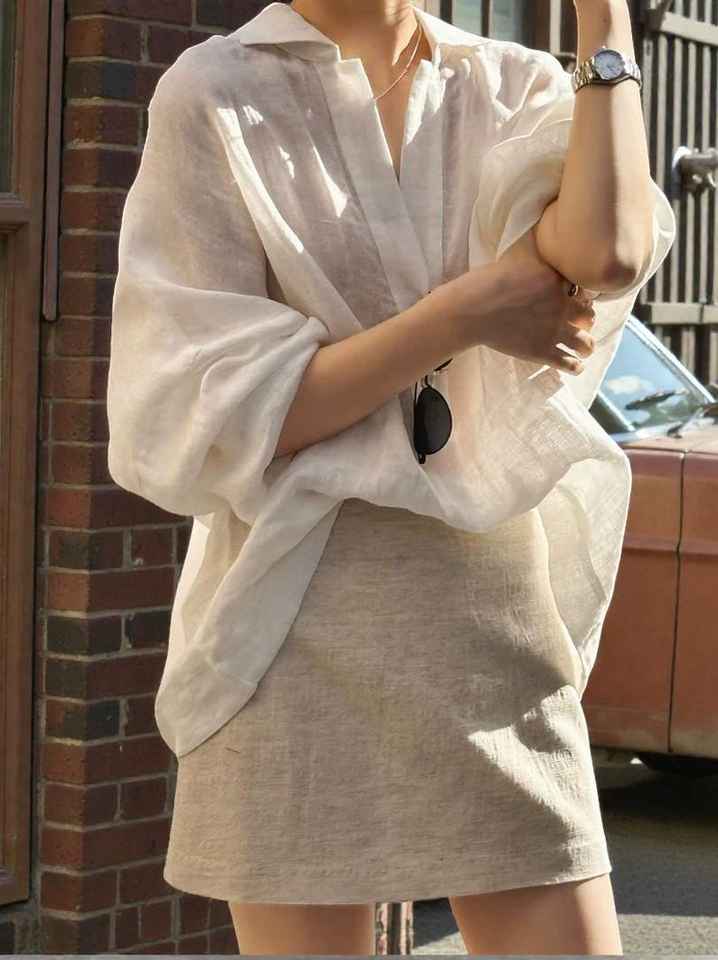 เสื้อผ้าลินินสีขาวสำหรับผู้หญิง สไตล์วินเทจ ผ้าไม่ทอ ทรงโอเวอร์ไซส์ ติดกระดุม ใส่สบายๆ สำหรับฤดูร้อน ทรงหลวม ผลิตตามแบบ ODM