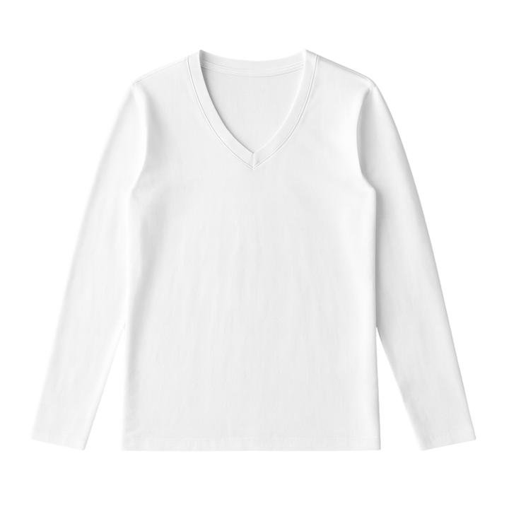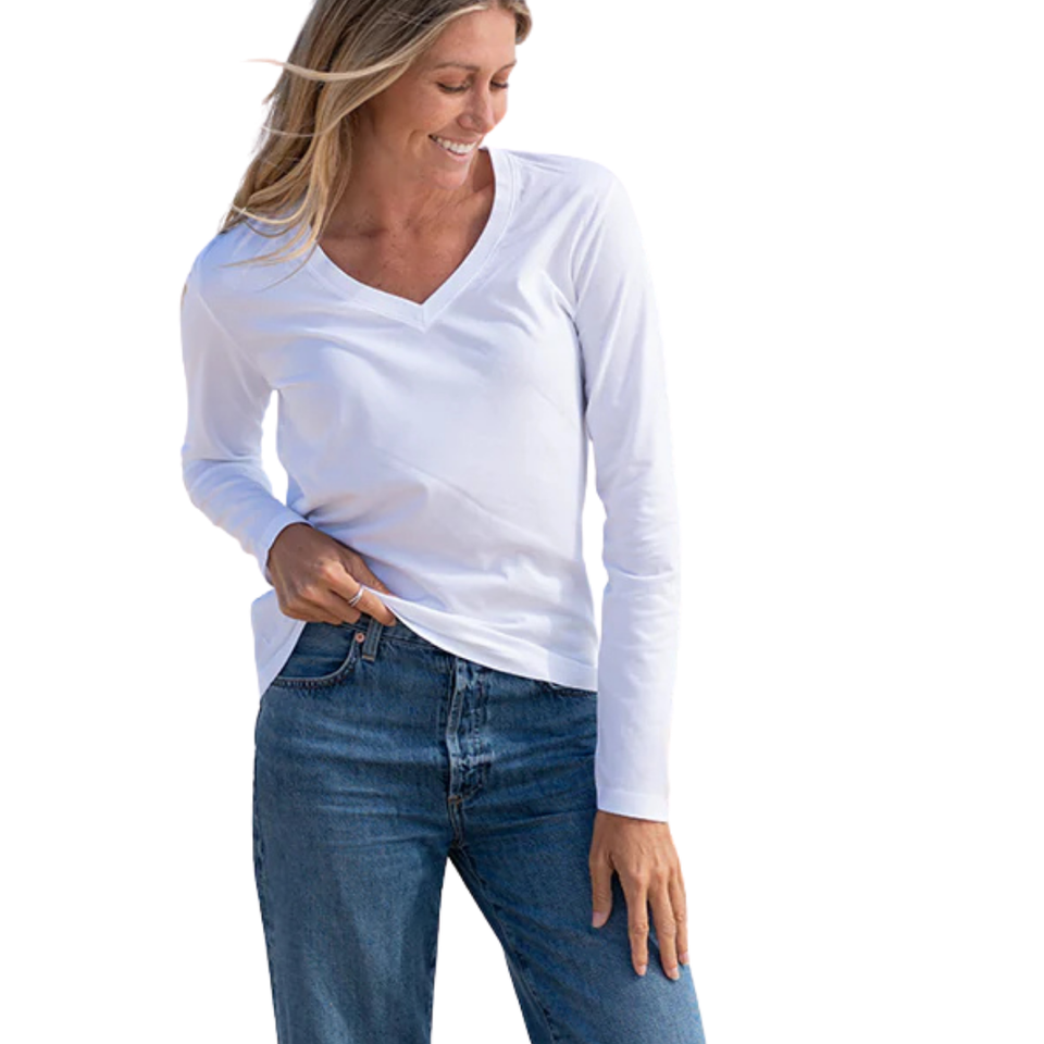 Women White Long Sleeve V Neck T Shirt 100% Luxury Organic Cotton Pre Shrunk GOTS Certified Premium Soft Classic Fit Tee