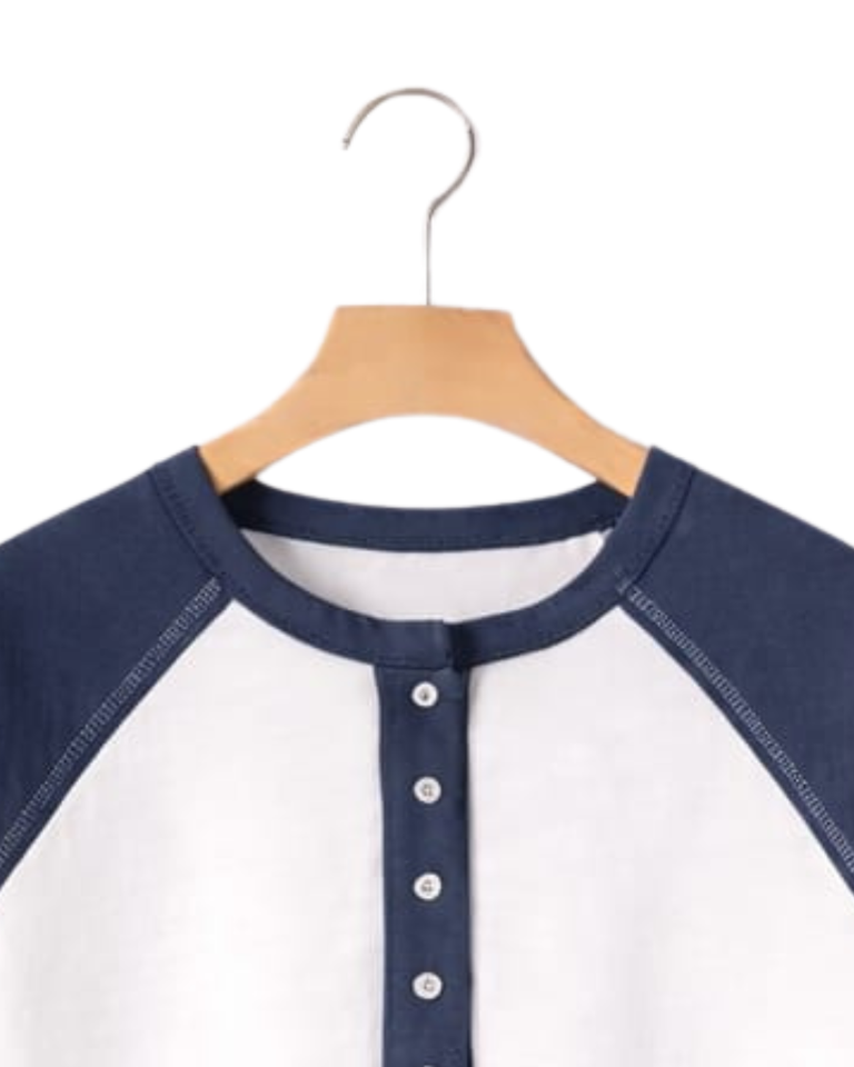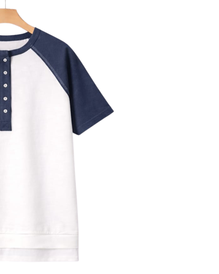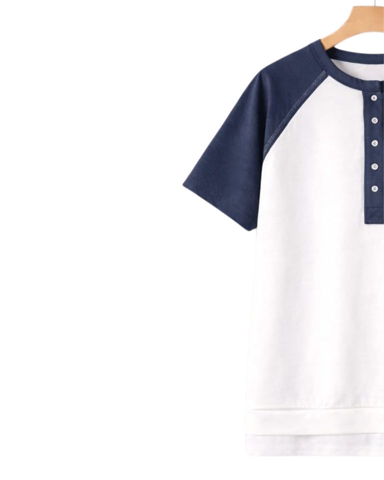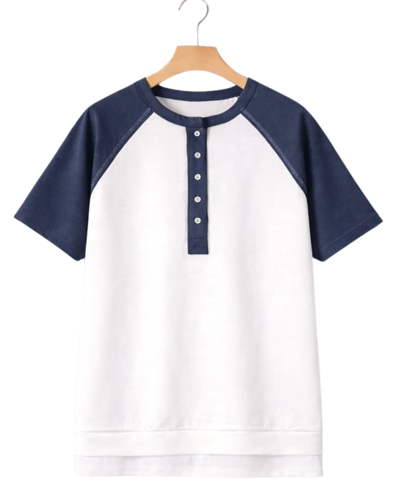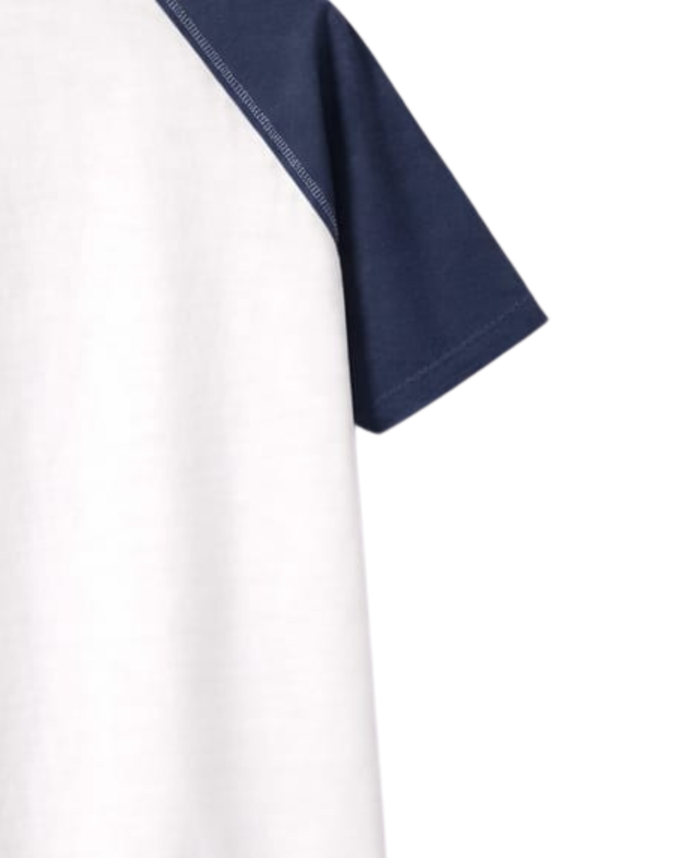 เสื้อยืดแขนสั้นผู้หญิงสีขาวกรมท่า แขนเสื้อแบบแร็กแลน ผ้าฝ้ายผสม แขนสั้น สวมใส่สบาย น้ำหนักเบา เหมาะสำหรับฤดูร้อน
