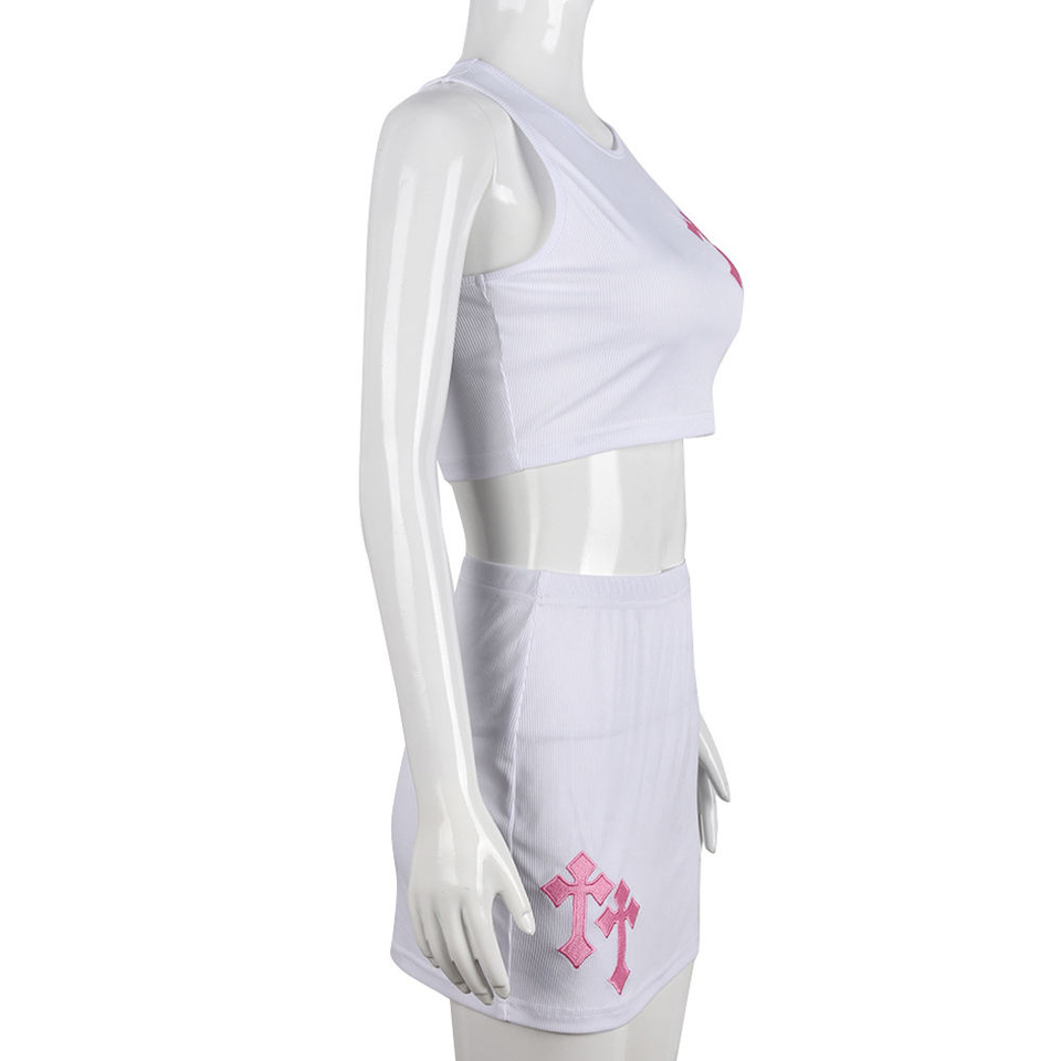 ชุดเซ็ตกระโปรงมินิสั้นสีขาวสองชิ้นสำหรับผู้หญิง เสื้อครอปท็อปและกระโปรงเข้าชุด สไตล์ลำลอง ใส่สบาย ระบายอากาศได้ดี เหมาะสำหรับใส่เที่ยวคลับในช่วงฤดูร้อน