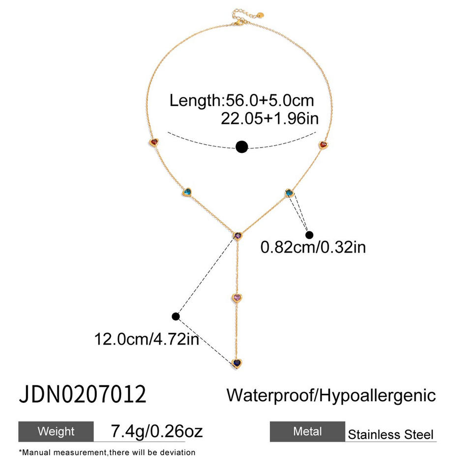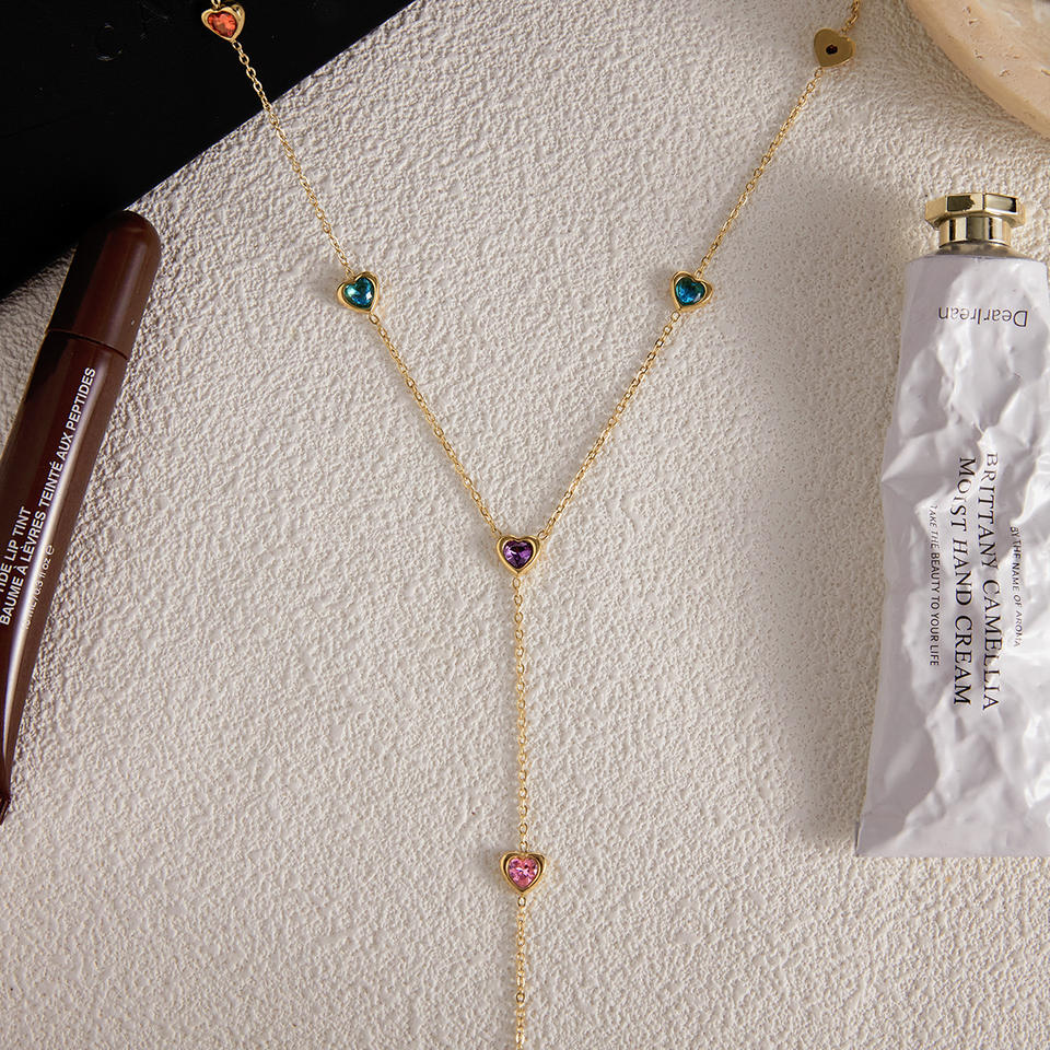 Women Wholesale 18k Gold Plated Colorful Zircon Long Tassel Fashion Stainless Steel Y Shaped Chain Necklace