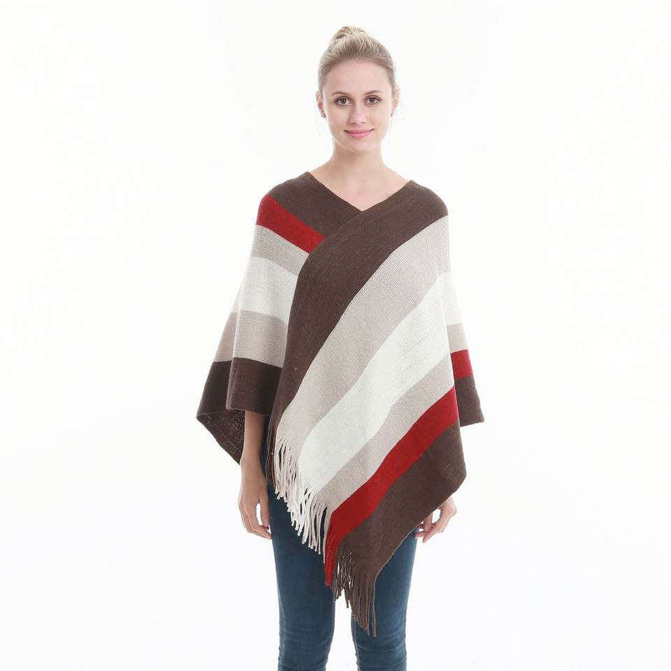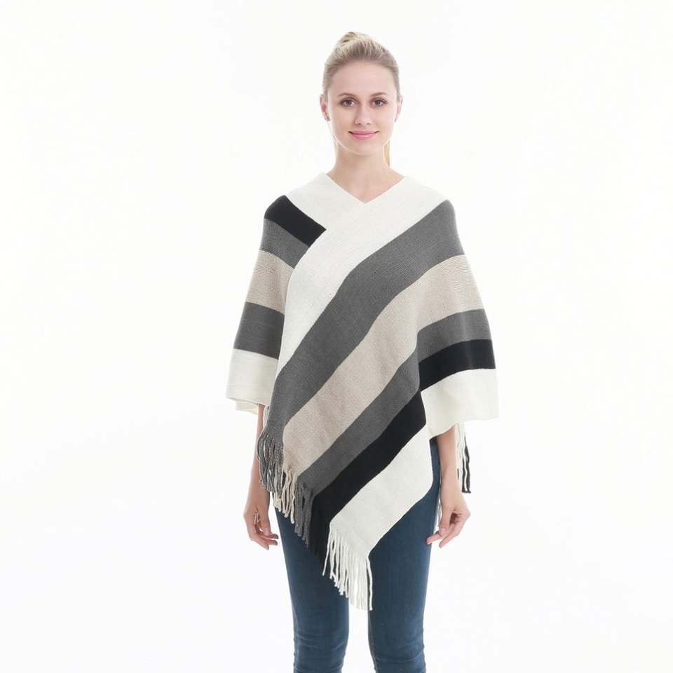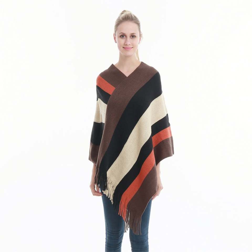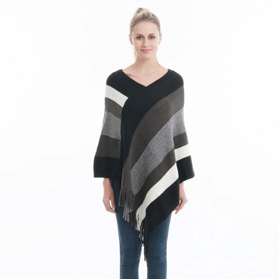 ผ้าคลุมไหล่และเสื้อคลุมโพลีเอสเตอร์แต่งพู่บล็อกสีสำหรับกิจกรรมกลางแจ้งสำหรับผู้หญิงแฟชั่นใหม่ขนาดพิเศษ