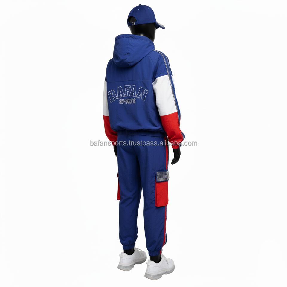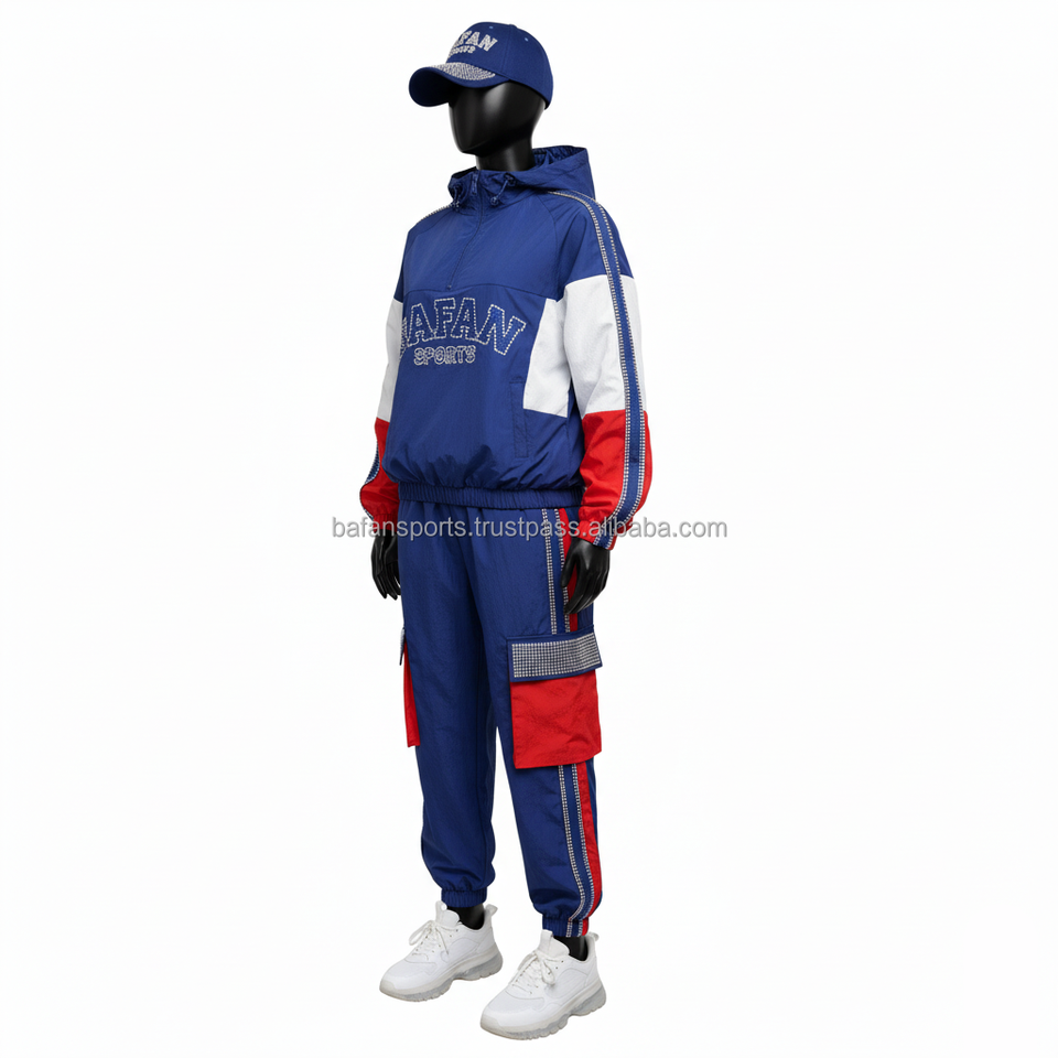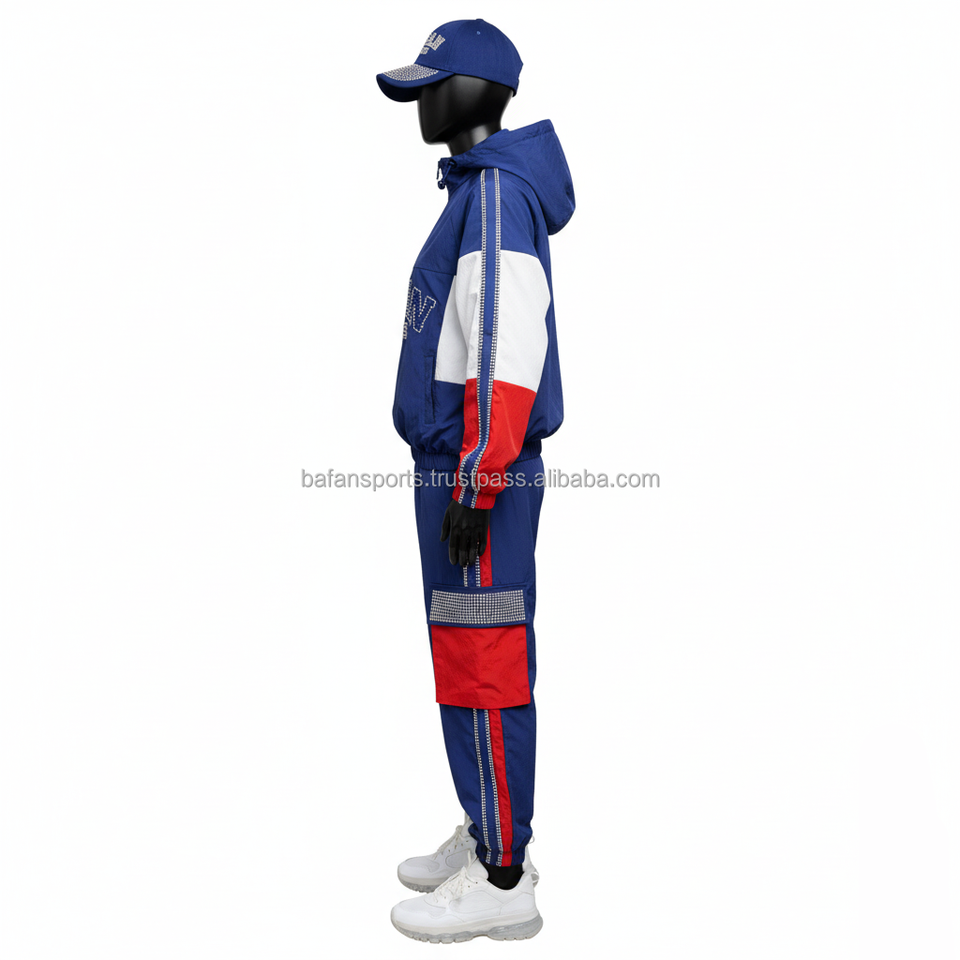 ชุดเสื้อกันลมสำหรับผู้หญิงชุด130GSM ผ้าไนลอนสูงชุดกีฬาสีฟ้าสีแดงสีขาวชุดปักโลโก้ได้ตามต้องการขนาดพิเศษ