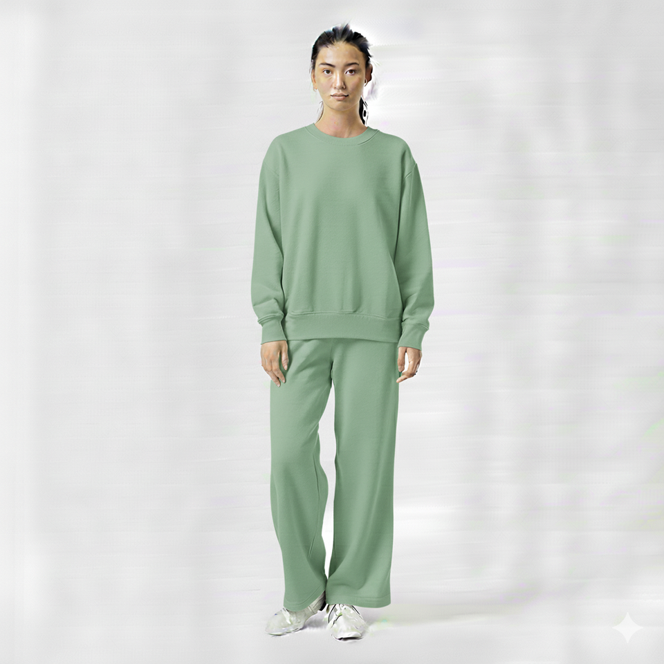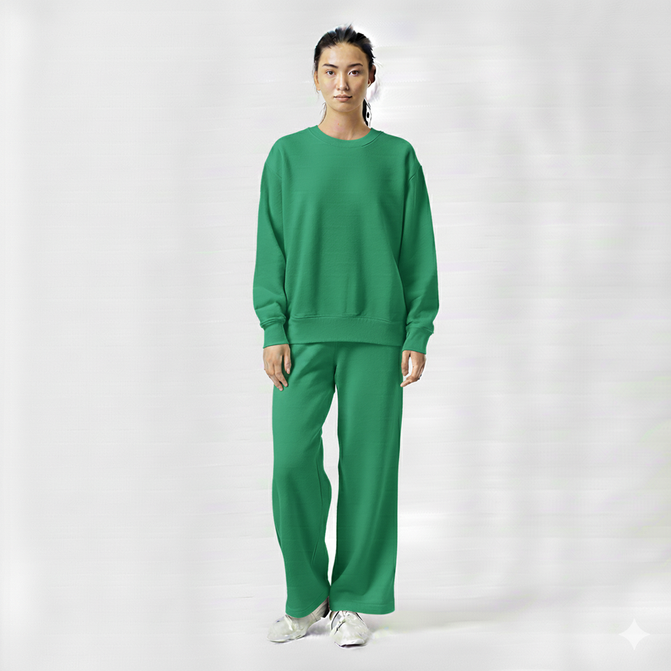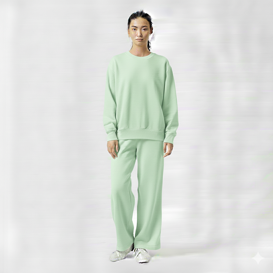 ชุดลำลองผู้หญิงสำหรับฤดูหนาว เสื้อสเวตเชิ้ตโอเวอร์ไซส์ กางเกงขายาวทรงกว้าง รับสกรีนโลโก้และสีตามสั่ง ชุดนอนผ้าฟลีซสองชิ้น