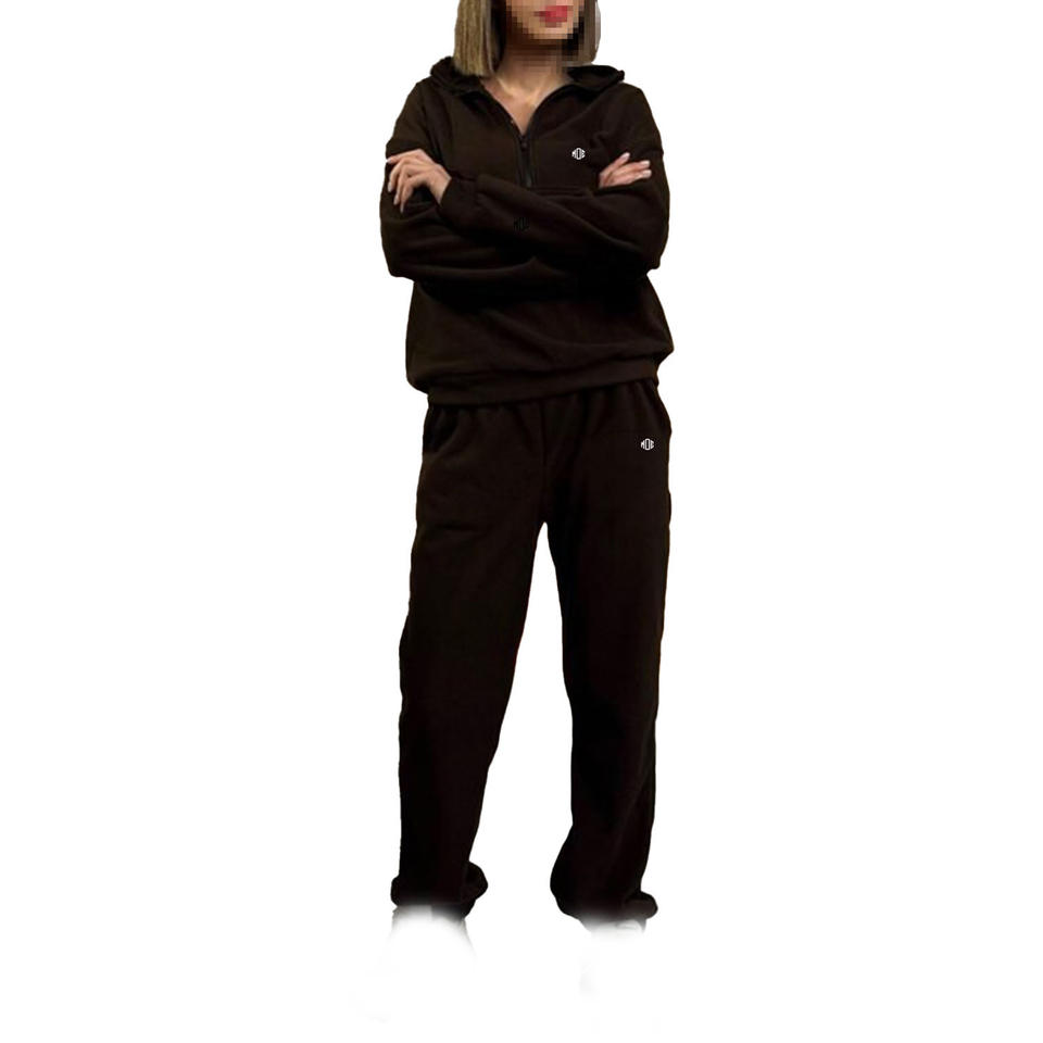 ชุดเซ็ตเสื้อผ้าฟลีซสำหรับผู้หญิงฤดูหนาว เสื้อสเวตเชิ้ตแบบซิปครึ่งตัว พร้อมกางเกงจ็อกเกอร์ทรงหลวม สวมใส่สบายๆ สำหรับการผลิตแบบ OEM ODM