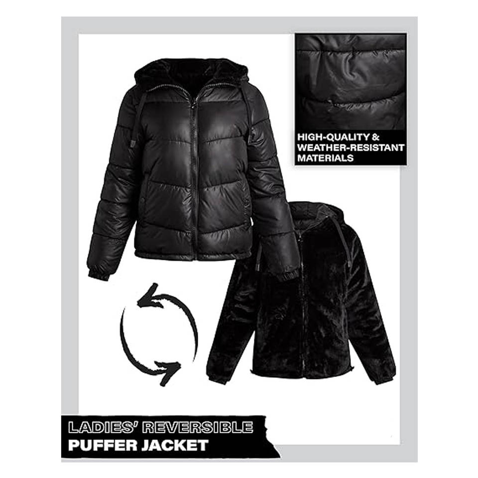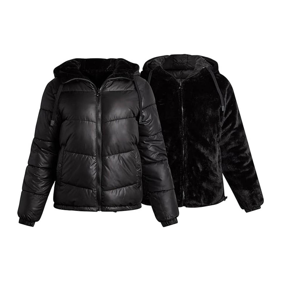เสื้อแจ็คเก็ตผู้หญิงสำหรับฤดูหนาวแบบหนา แบบสองด้าน บุผ้านวม แบบพาร์กา แบบพัฟเฟอร์ บุขนเทียม เสื้อแจ็คเก็ตอุ่นสำหรับผู้หญิง สำหรับอากาศหนาว
