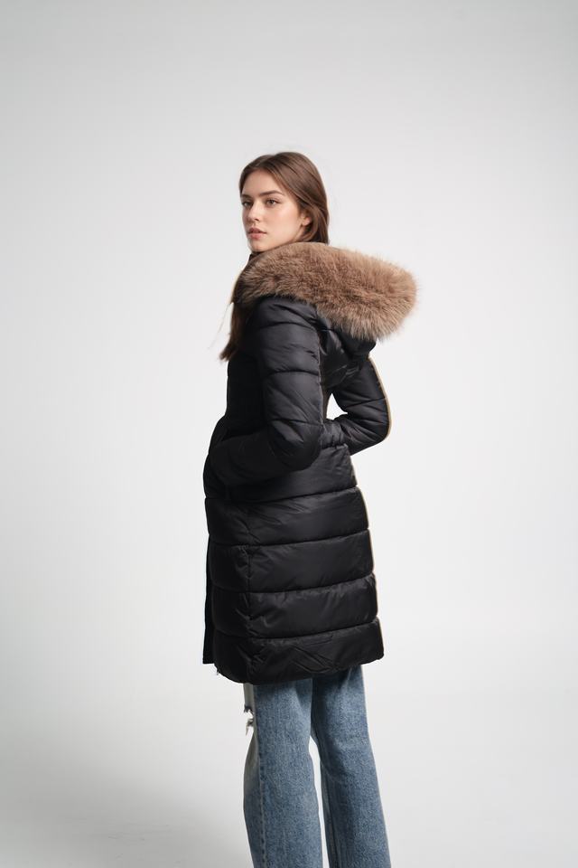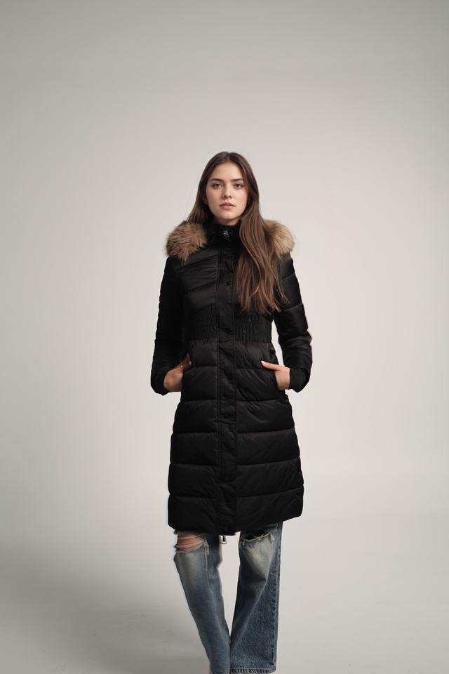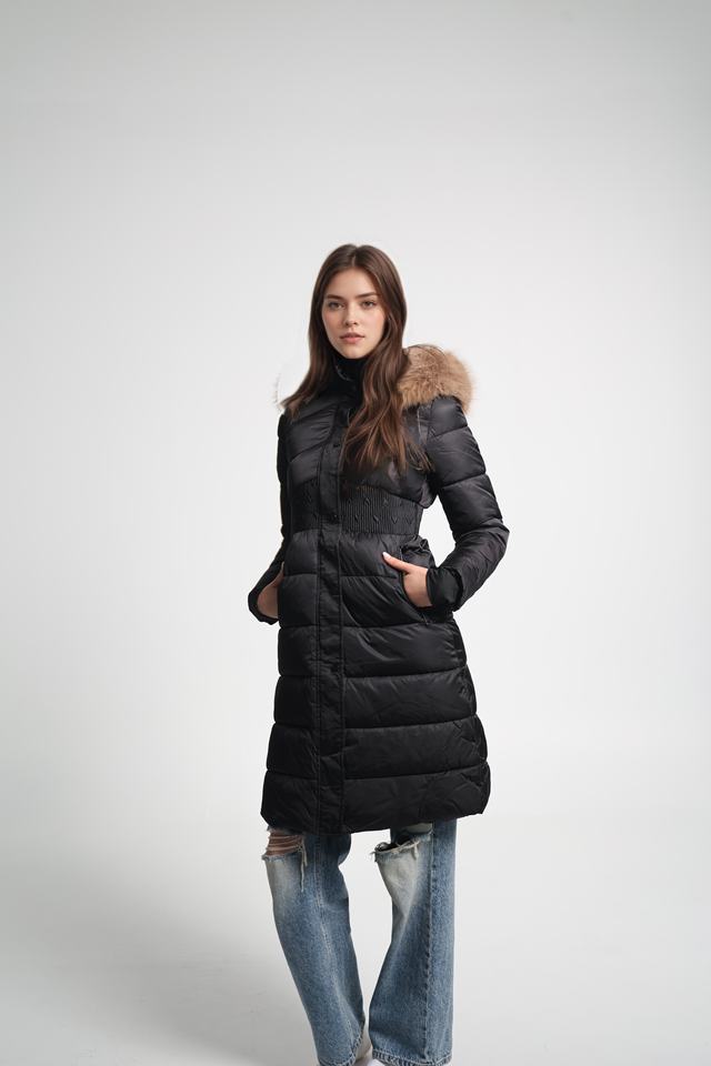 เสื้อโค้ทขนเป็ดบุนวมแบบยาวสำหรับผู้หญิงมีฮู้ดขน faux มีฉนวนกันความร้อนและยาวเพื่อความอบอุ่นที่เหนือกว่าในฤดูหนาว
