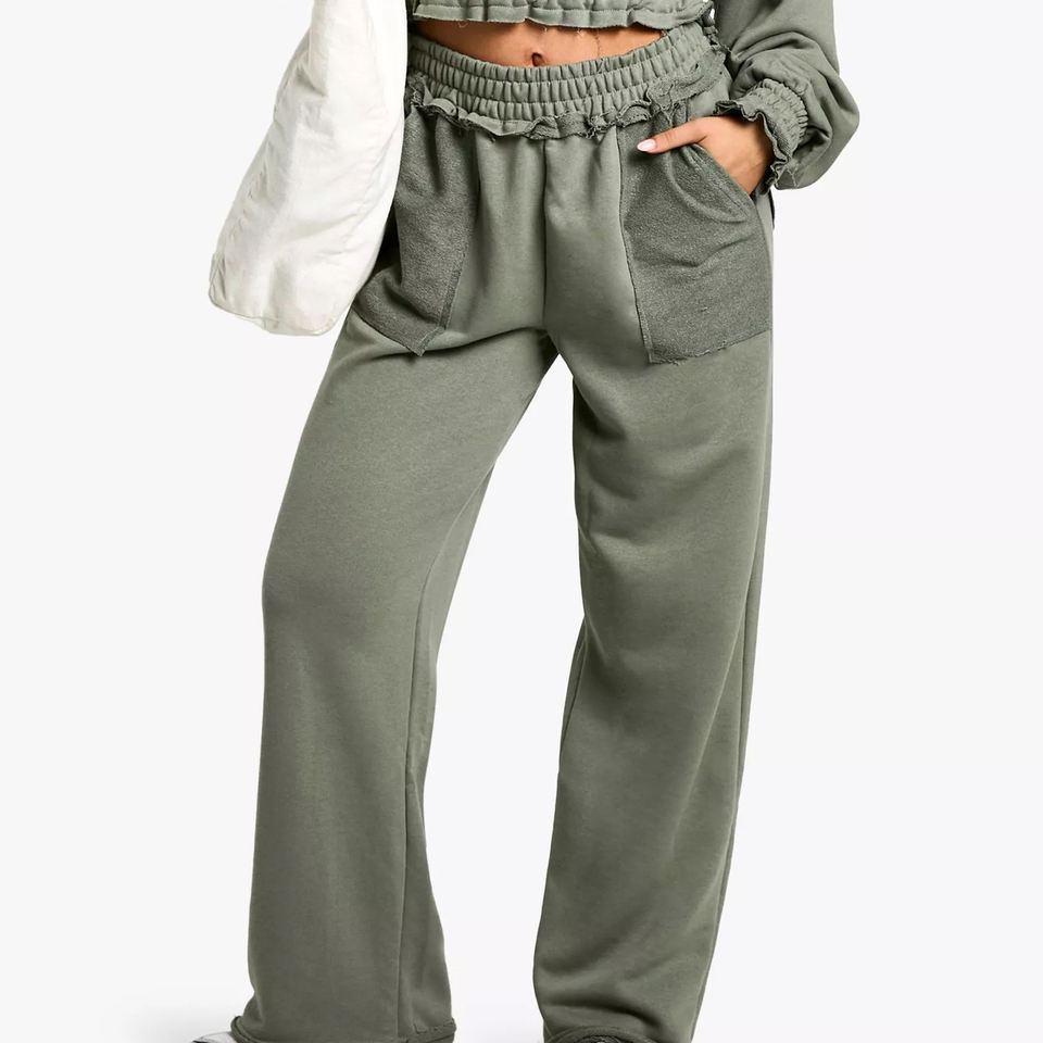 กางเกงแฟลร์เอวกลางสำหรับผู้หญิง ผ้าฝ้ายฟลีซ 100% ระบายอากาศ แห้งเร็ว กางเกงออกกำลังกาย รับทำโลโก้ ขายส่ง สีพื้น