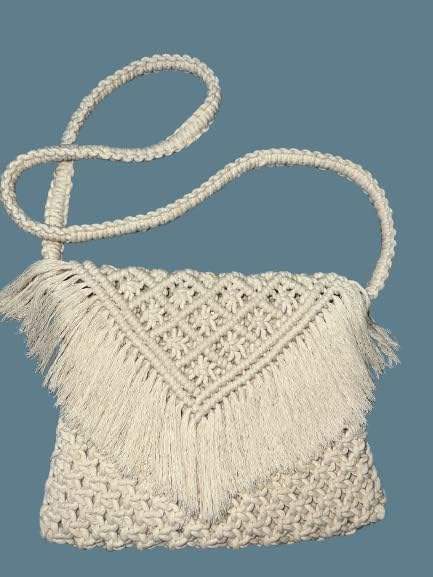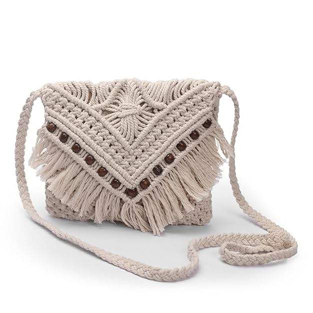 กระเป๋าสะพายแมคราเม่ทำมือสุดเก๋สำหรับผู้หญิง กระเป๋าถือผ้าฝ้ายสีขาวสำหรับใช้ในชีวิตประจำวันและการเดินทางแบบสบายๆ