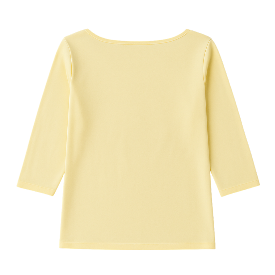 เสื้อยืดผู้หญิงสีเหลือง แขน 3/4 คอทรงเรือ ผ้าฝ้ายออร์แกนิค 100% คุณภาพพรีเมียม ผ่านการรับรอง GOTS ผ้าเนื้อนุ่มพิเศษ ทรงคลาสสิก