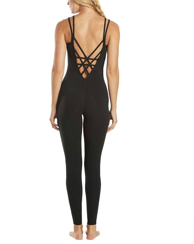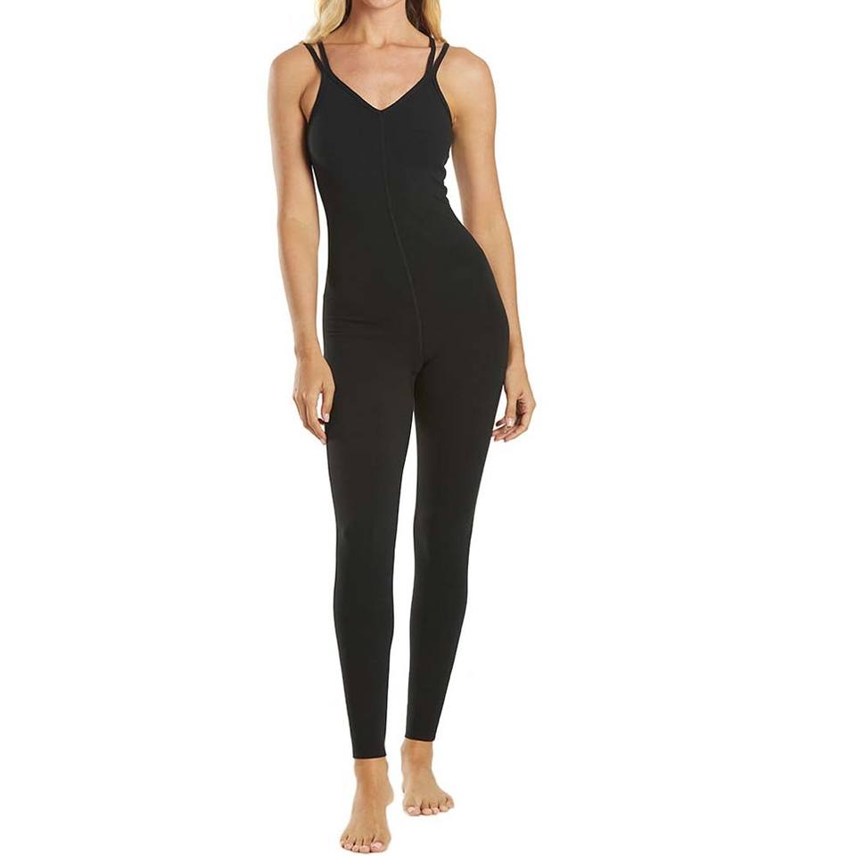 จั๊มสูทโยคะผู้หญิง สีดำ แขนกุด สายคู่ แบบ OEM บอดี้สูทออกกำลังกาย ยืดหยุ่น กระชับรูปร่าง ชุดออกกำลังกาย