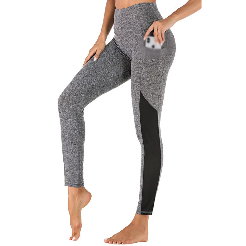 กางเกงเลกกิ้งเอวสูงสำหรับผู้หญิงกางเกงฟิตเนสสี่ทางผ้าสแปนเด็กซ์/ ไนลอนระบายอากาศได้ดี