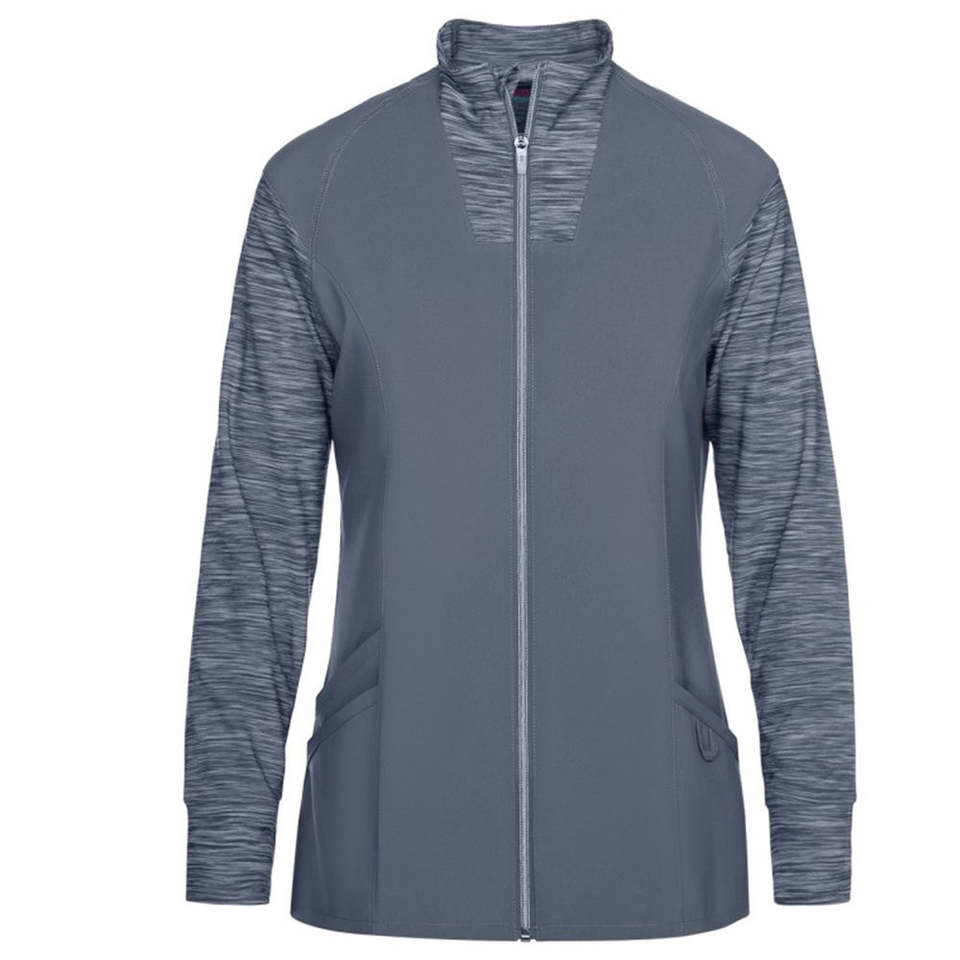 เสื้อแจ็คเก็ตแบบมีซิปสำหรับผู้หญิง ออกแบบมาเพื่อเจ้าหน้าที่ด้านการดูแลสุขภาพ ให้สวมใส่ง่าย ผ้าทนทาน และลุคมืออาชีพที่สะอาดตา