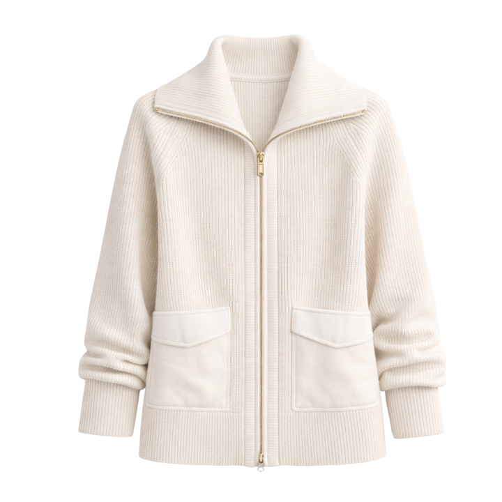 เสื้อแจ็คเก็ตถักสำหรับผู้หญิง เนื้อผ้าเรียบลื่น ซิปด้านหน้า แขนยาว มีกระเป๋าหน้าอก เสื้อคลุมน้ำหนักเบาสำหรับใส่ทุกวัน