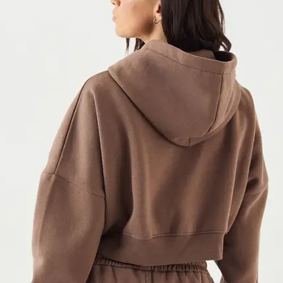 Women Zip Up Crop Hoodie Fleece 300GSM Soft Warm Hoodie 2026 Wholesale Women Zip Up Crop Hoodie Cropped Fit Casual Hoodie 2026