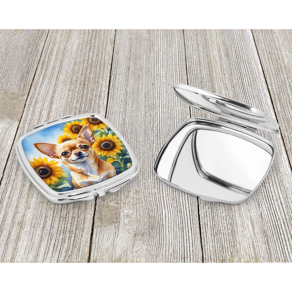 กระจกแต่งหน้าขนาดกะทัดรัดสำหรับเดินทางสำหรับผู้หญิงและผู้หญิงกระเป๋าตกแต่งลายดอกทานตะวันชิวาวาของขวัญแบบพับได้