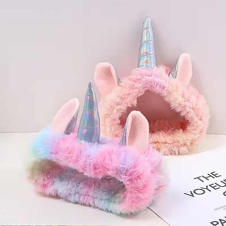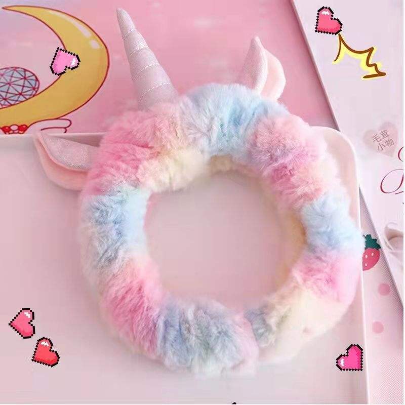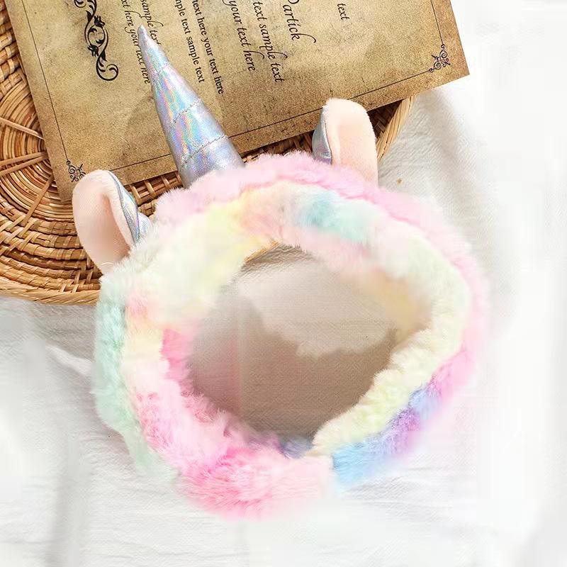 ที่คาดผมยูนิคอร์นแฟชั่นสำหรับผู้หญิงและเด็กผู้หญิง น่ารัก สีสันสดใส ทำจากผ้าพลัฌ ใช้สำหรับแต่งหน้า ล้างหน้า ยืดหยุ่นได้