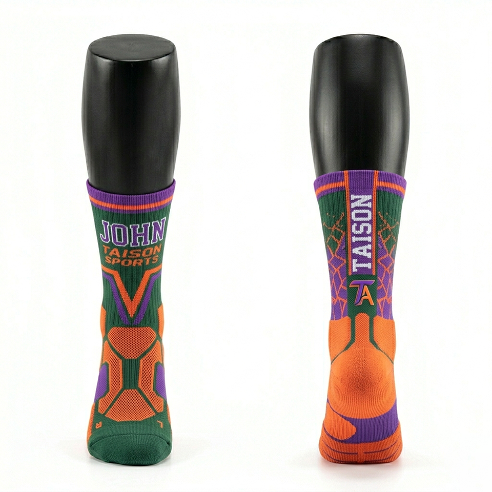 ถุงเท้าบาสเกตบอลสำหรับผู้หญิงและผู้ชาย ผ้าฝ้ายผสมโพลีเอสเตอร์และสแปนเด็กซ์ประสิทธิภาพสูง แผ่นผ้าที่มีโครงสร้าง ถักทออย่างดี พร้อมโลโก้ ถุงเท้าผู้หญิง