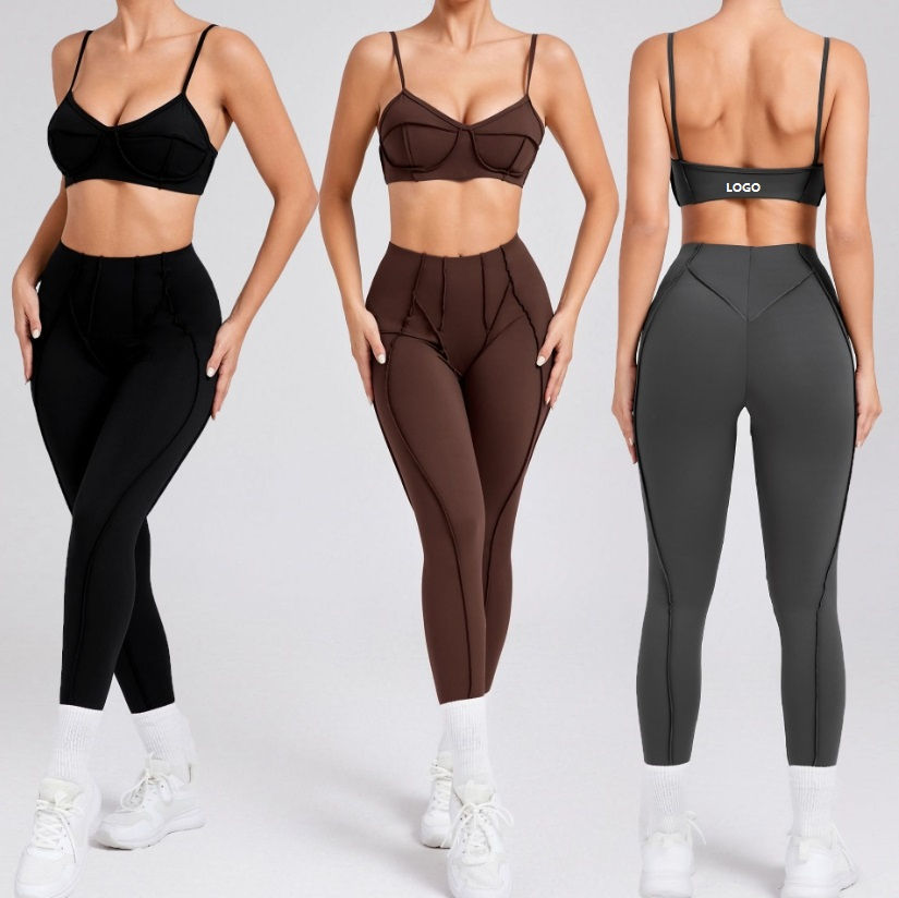 ชุดโยคะสั้นแบบเข้ารูป 2 ชิ้น สำหรับผู้หญิง สั่งทำได้ MOQ ต่ำ แฟชั่นทันสมัย ระบายอากาศดี เซ็กซี่ เป็นมิตรกับสิ่งแวดล้อม แห้งเร็ว