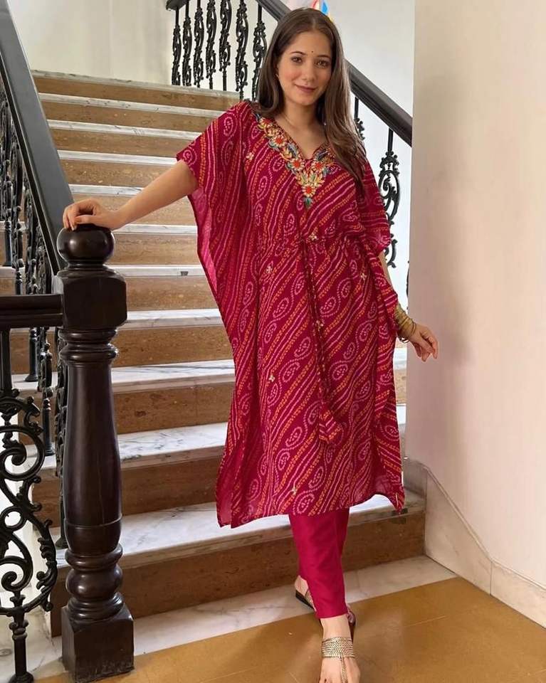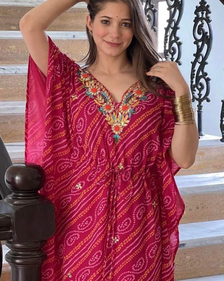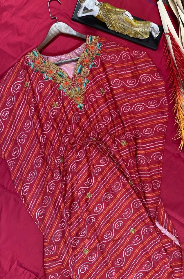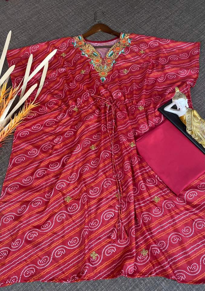 คาฟตานผ้าไหมมอร์เดนปักลายสำหรับผู้หญิง,พร้อมพิมพ์กางเกง Jaipuri ดีไซน์ Kaftan
